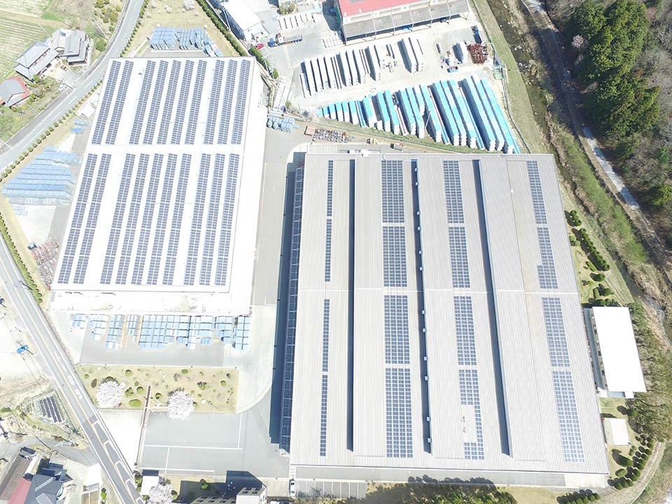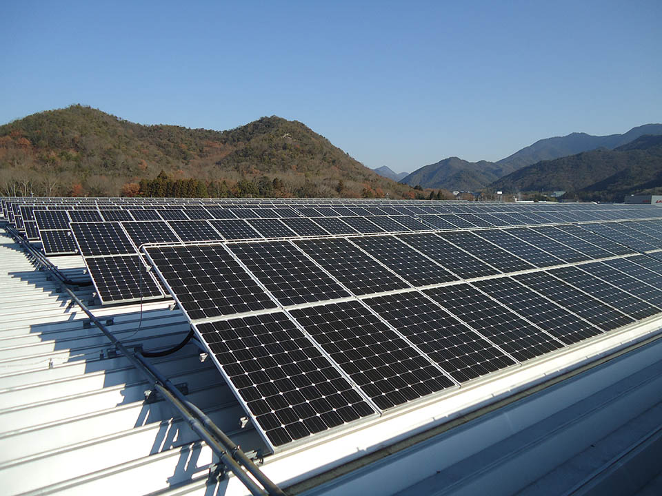 2013年に竣工した西脇第二工場屋根に太陽光発電設備を設置し、工場竣工に並行して年度初頭から発電した電力を全て関西電力に売電する形で本格稼働しています。 2023年4月以降、売電と同時に非化石証書を買い戻し、工場で使用する電力に環境価値を付加しております。