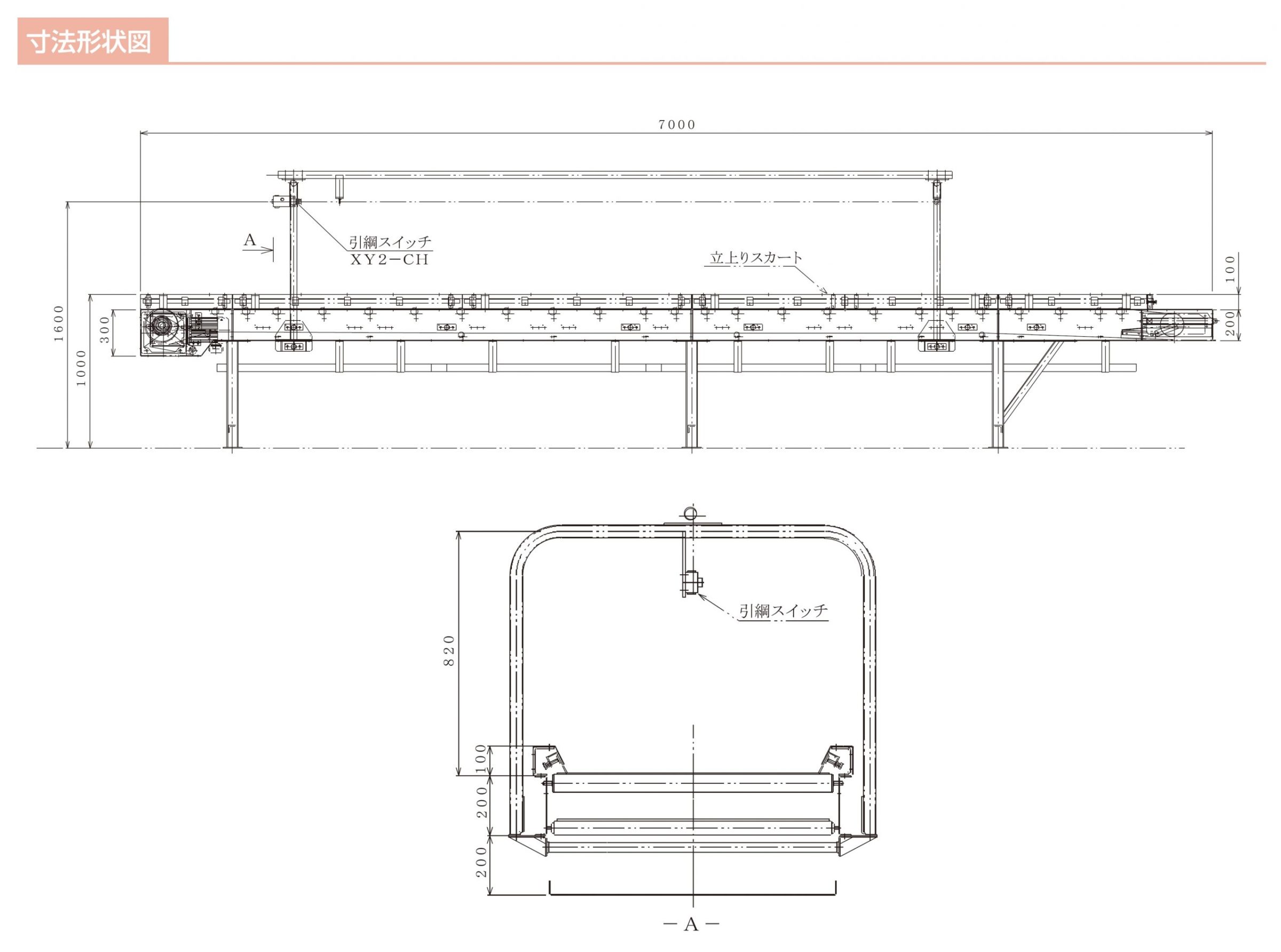 緊急時にコンベヤを停止するアーチ型スイッチ等もオプションで選択可能